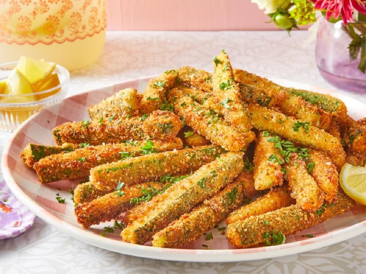 Үүний дараа шарах шүүгээний тавцан дээр хольцоо шарсан төмсний хэлбэртээ хэсэг хэсгүүдэд хувааж тавиад шарах шүүгээнд 200 градуст 20 минут болгоод бэлэн болно.
